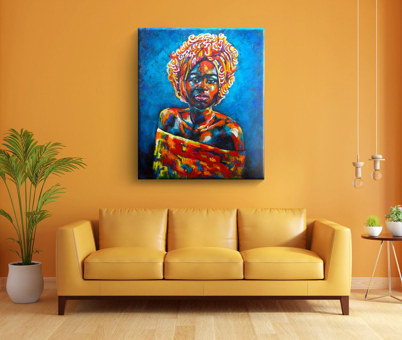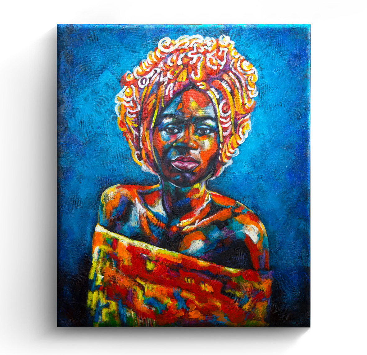 An artwork suits an African decor. No much colours but easy to display on a light wall.
